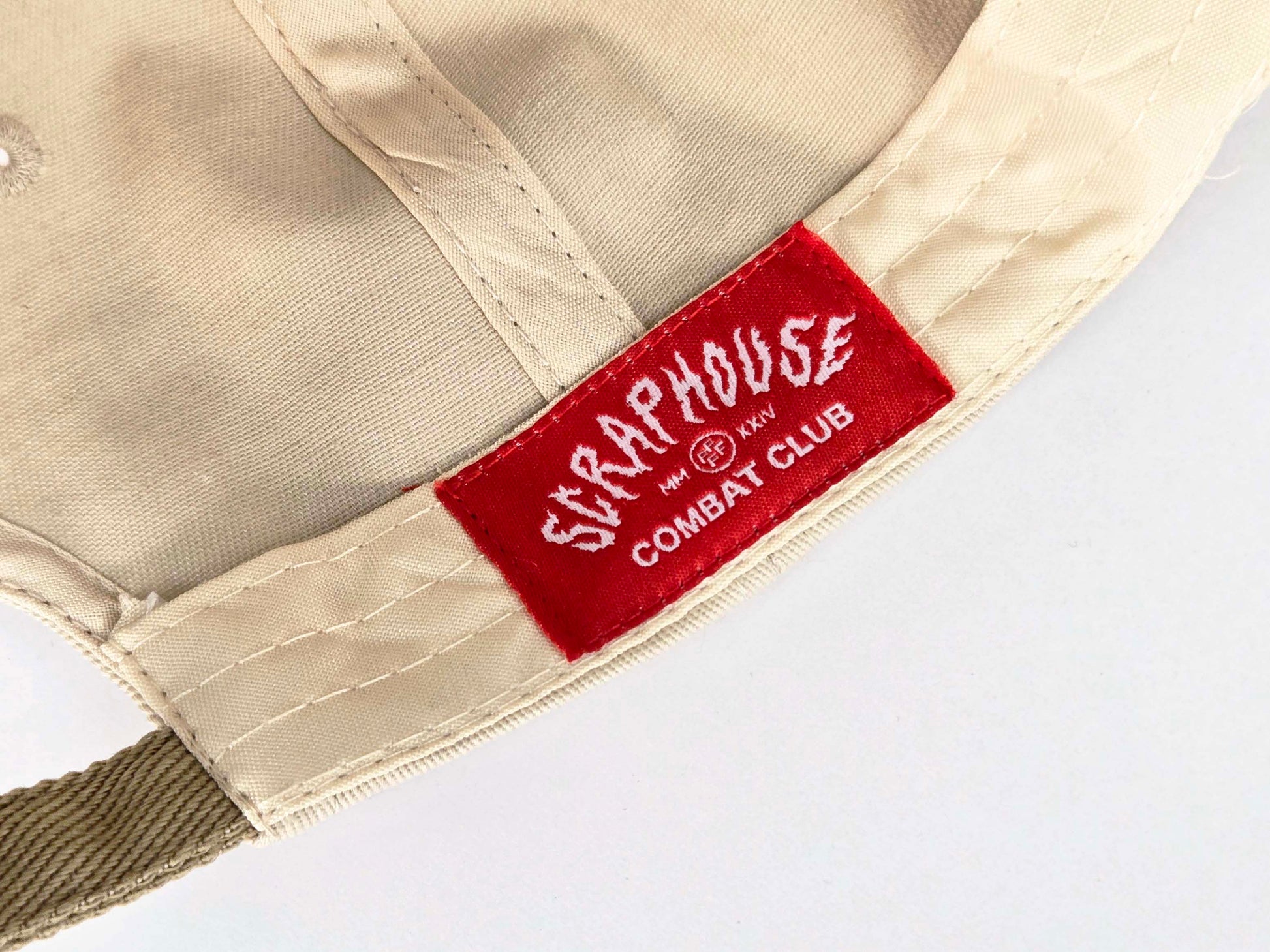 - 6-panel unstructured "dad" hat embroidered with Scraphouse circle logo and Badger icon on the the back